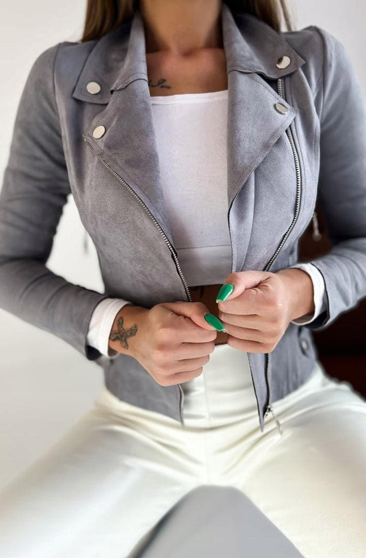 🔥Anika Oversized Suede Bomber Jacket – Grey 💎