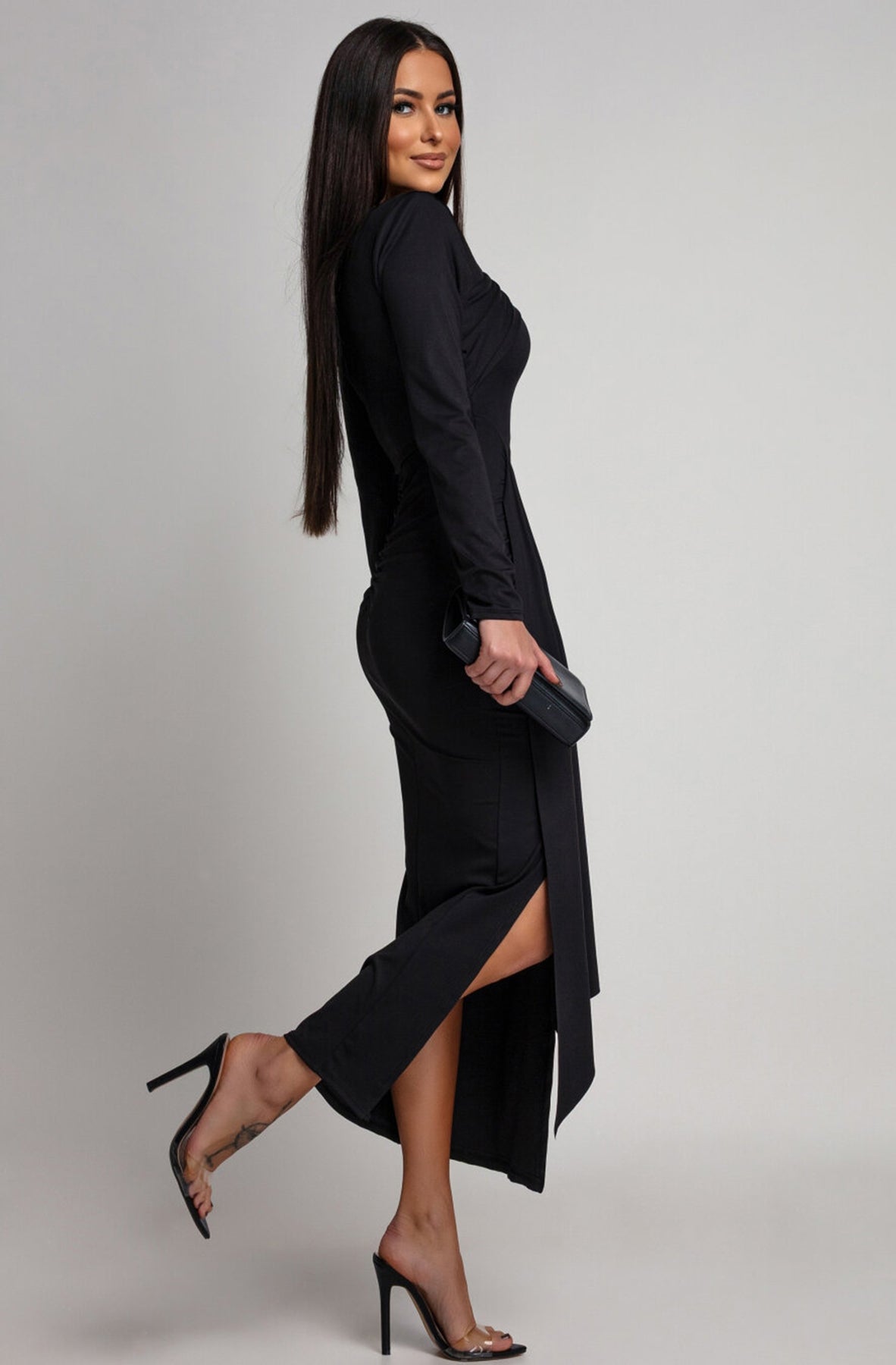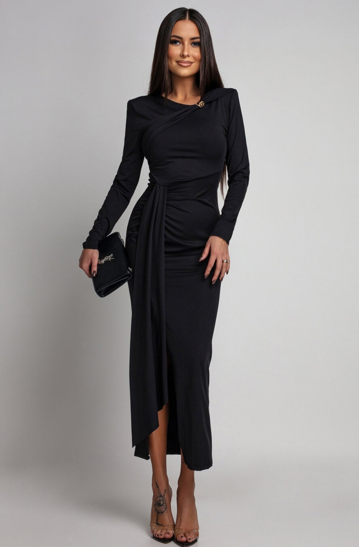 Dolly — the dreamy draped midaxi that feels as magical as it looks. 💫🖤